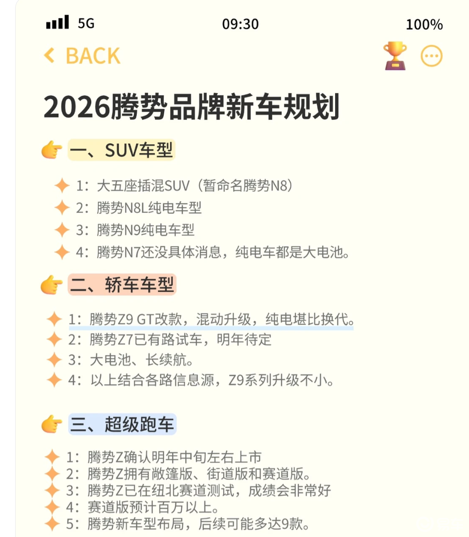 对于有购车计划的消费者而言,2026年将是关注腾势的绝佳时机。随着新车矩阵的完善,市场竞争将推动配置升级与价格优化。尤其是腾势Z9 GT的改款细节与腾势Z超跑的纽北测试成绩,值得持续关注。无论是家用SUV、中型轿车还是百万超跑,腾势的新车都可能带来意想不到的惊喜。